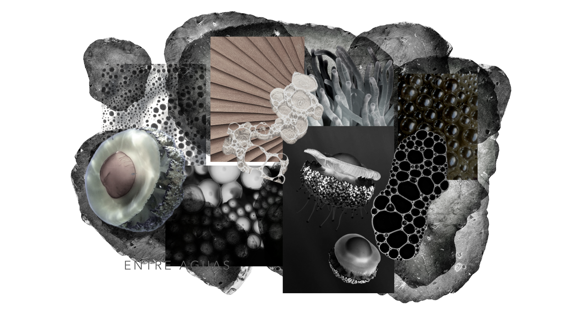 La colección surge de la fascinación por la “medusa huevo frito”, una criatura marina que flota suspendida entre lo delicado y lo peligroso. A partir de esta referencia visual y simbólica, se desarrolla una propuesta que transforma lo blando, lo visceral y lo orgánico en códigos de diseño. Las piezas, construidas con volúmenes irregulares, contrastes y acabados brillantes, evocan tanto la presencia física como la energía etérea de la medusa.